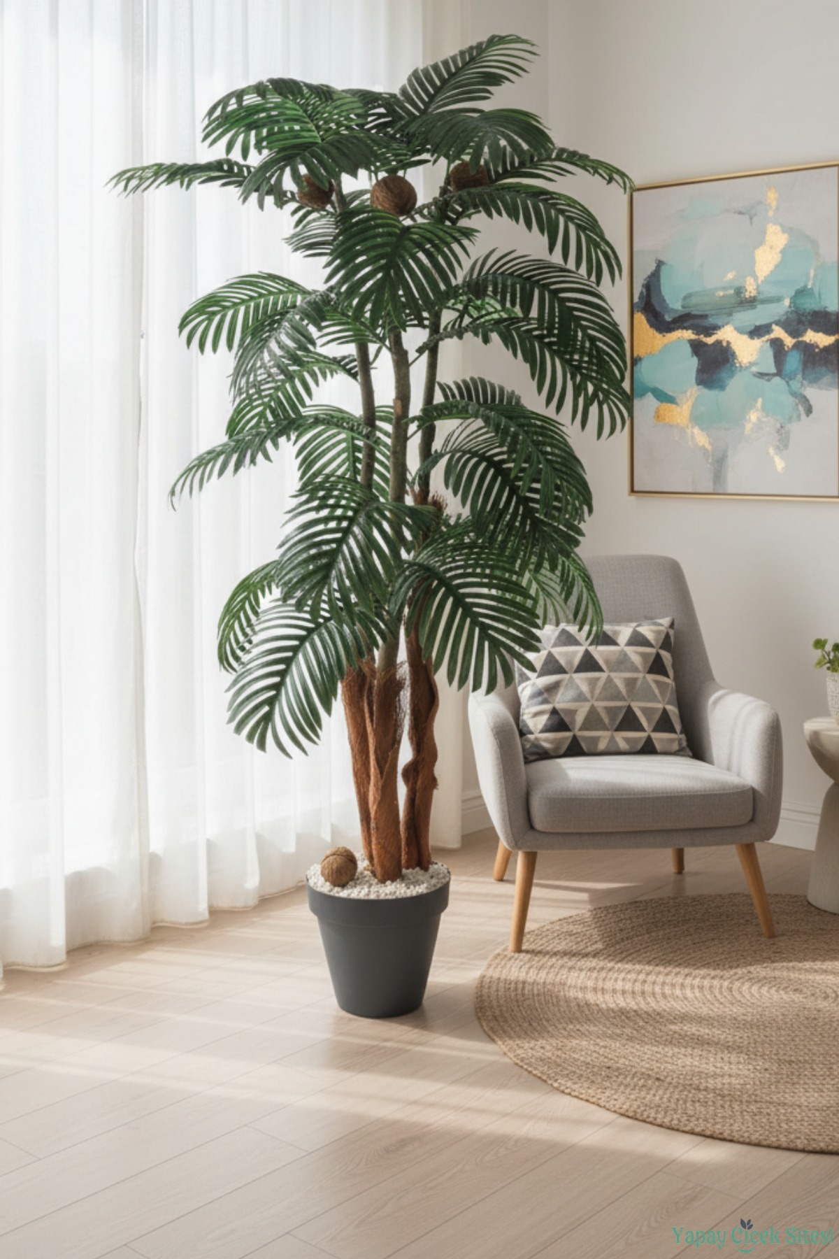Bakım Kolaylığı: Gerçek palmiyelerin aksine nem, özel ışık veya sulama gerektirmez; yaprak dökmez.
