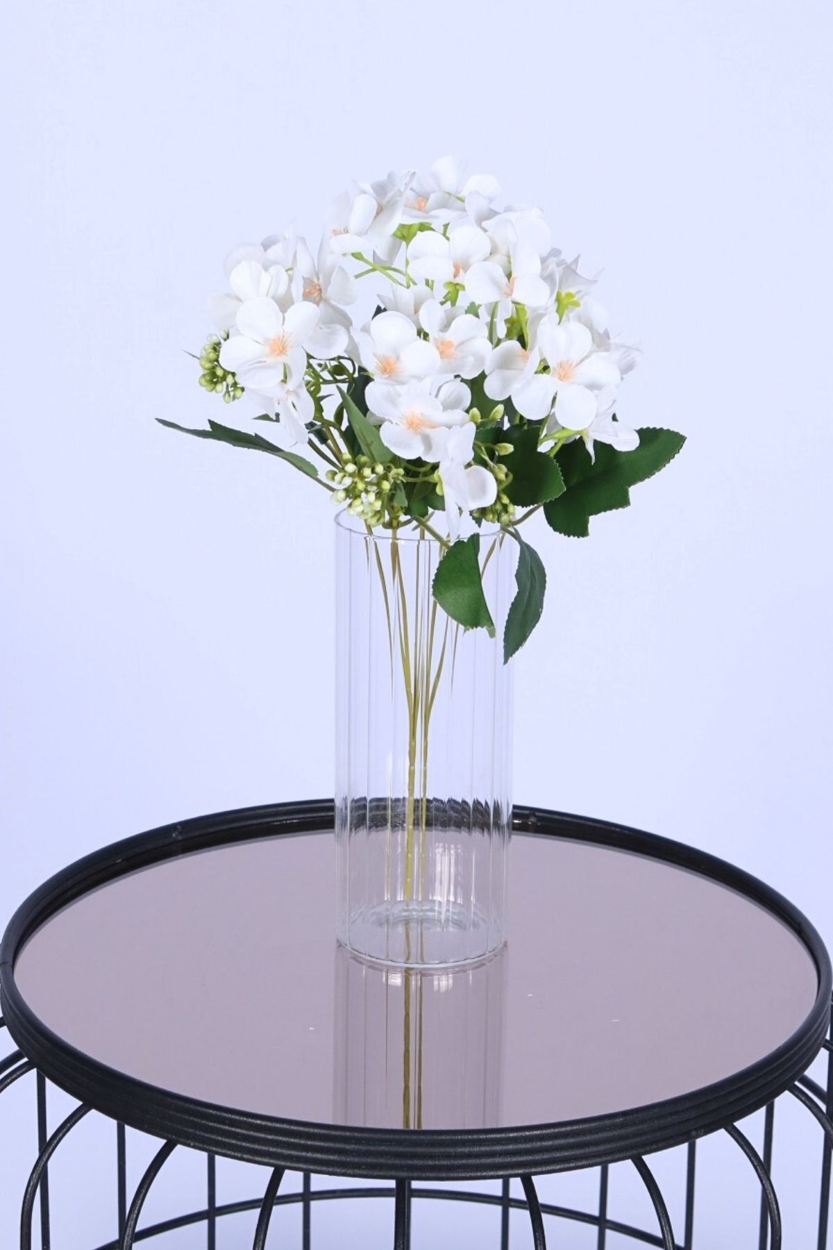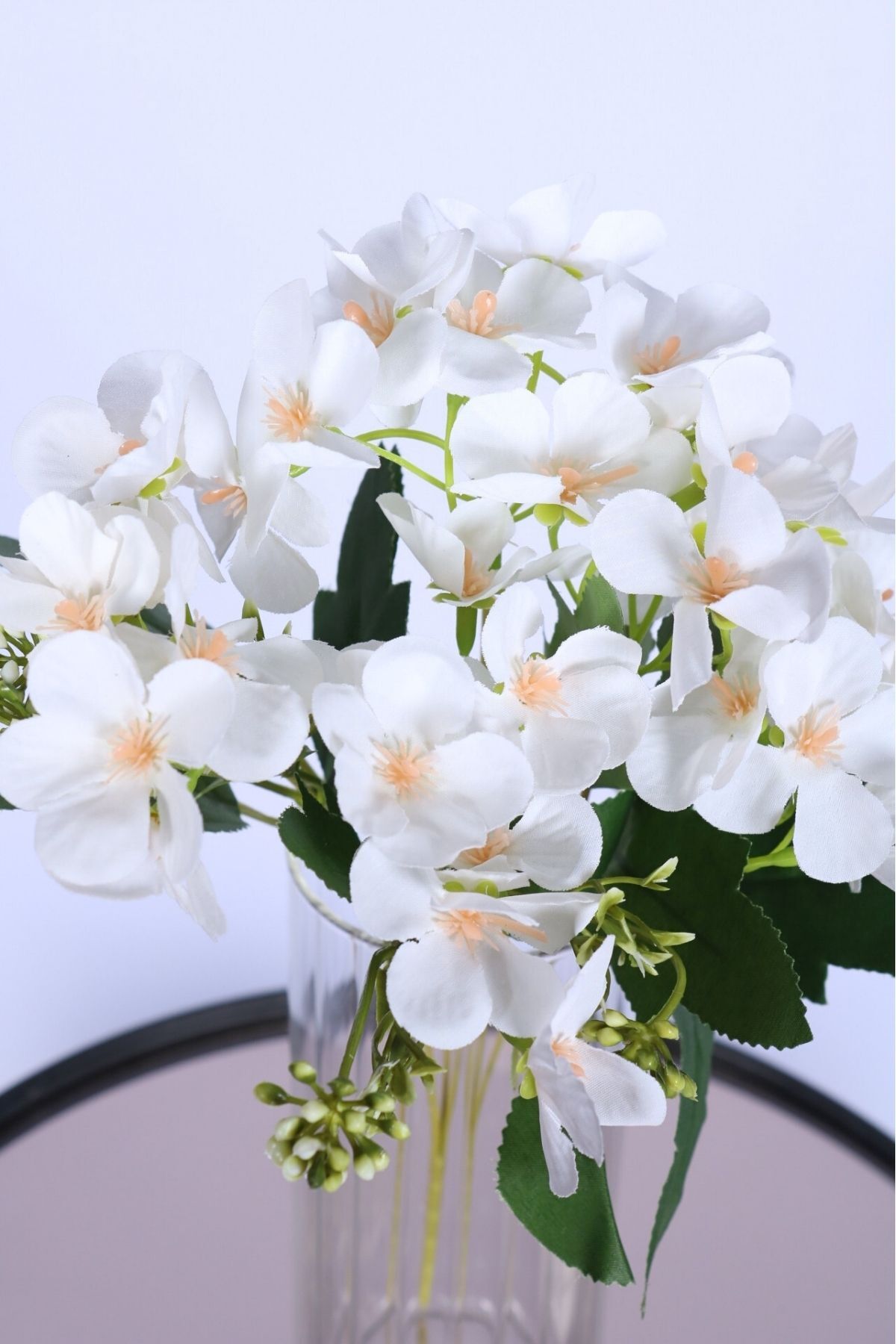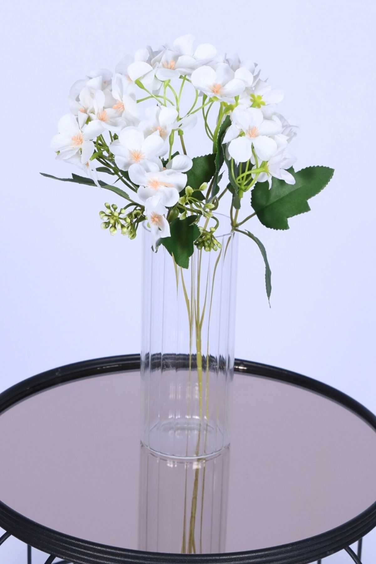 Doğal görünümlü yeşil yaprak ve tomurcuk detaylarıyla zenginleştirilmiştir