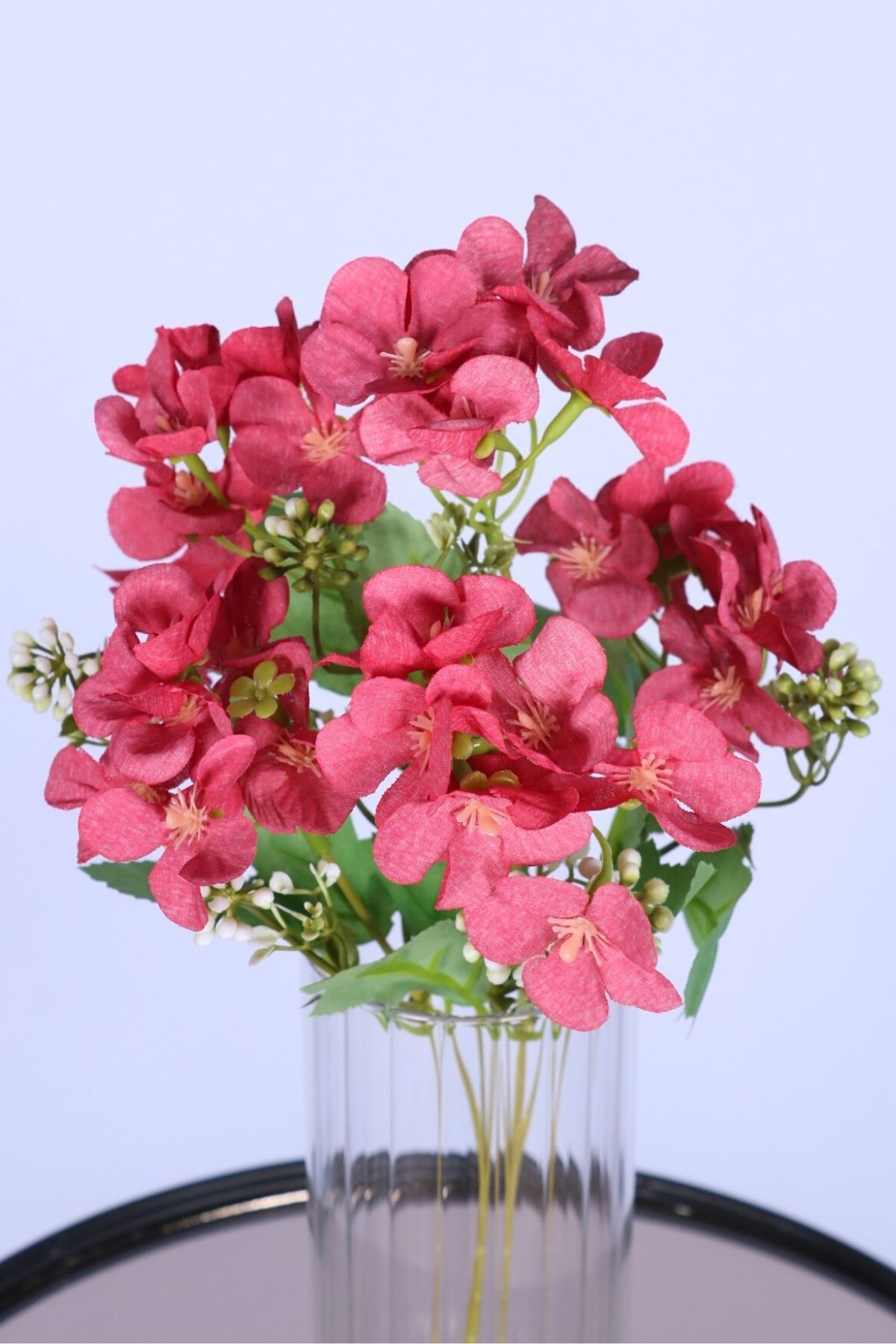 Gerçeğe yakın dokuda tasarlanmış Fuşya şeftali çiçeklerinden oluşur