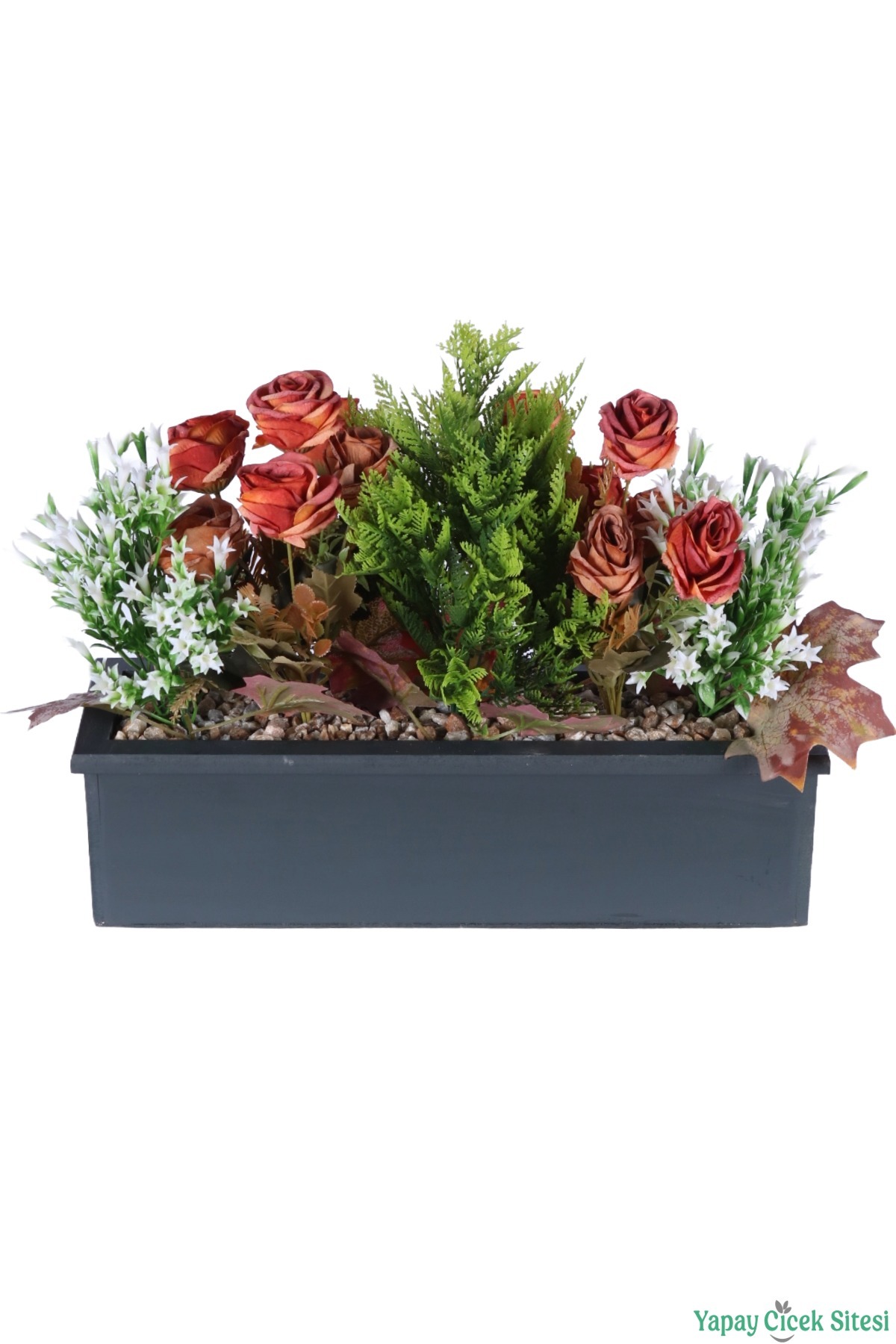 Modern Tasarım: Antrasit renkli, minimalist ve dikdörtgen formda şık bir ahşap saksı içerisinde sunulmaktadır.