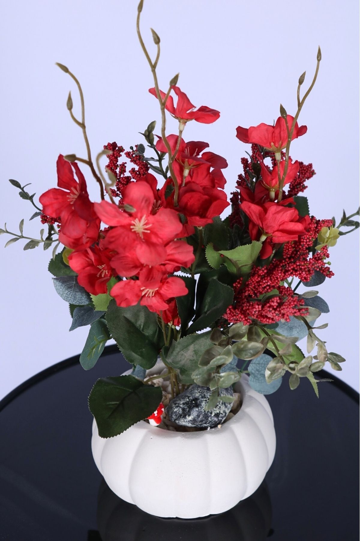 • Özel Detaylar: Saksı içerisinde dekoratif taş ve minik mantar figürü ile zenginleştirilmiş tasarım.