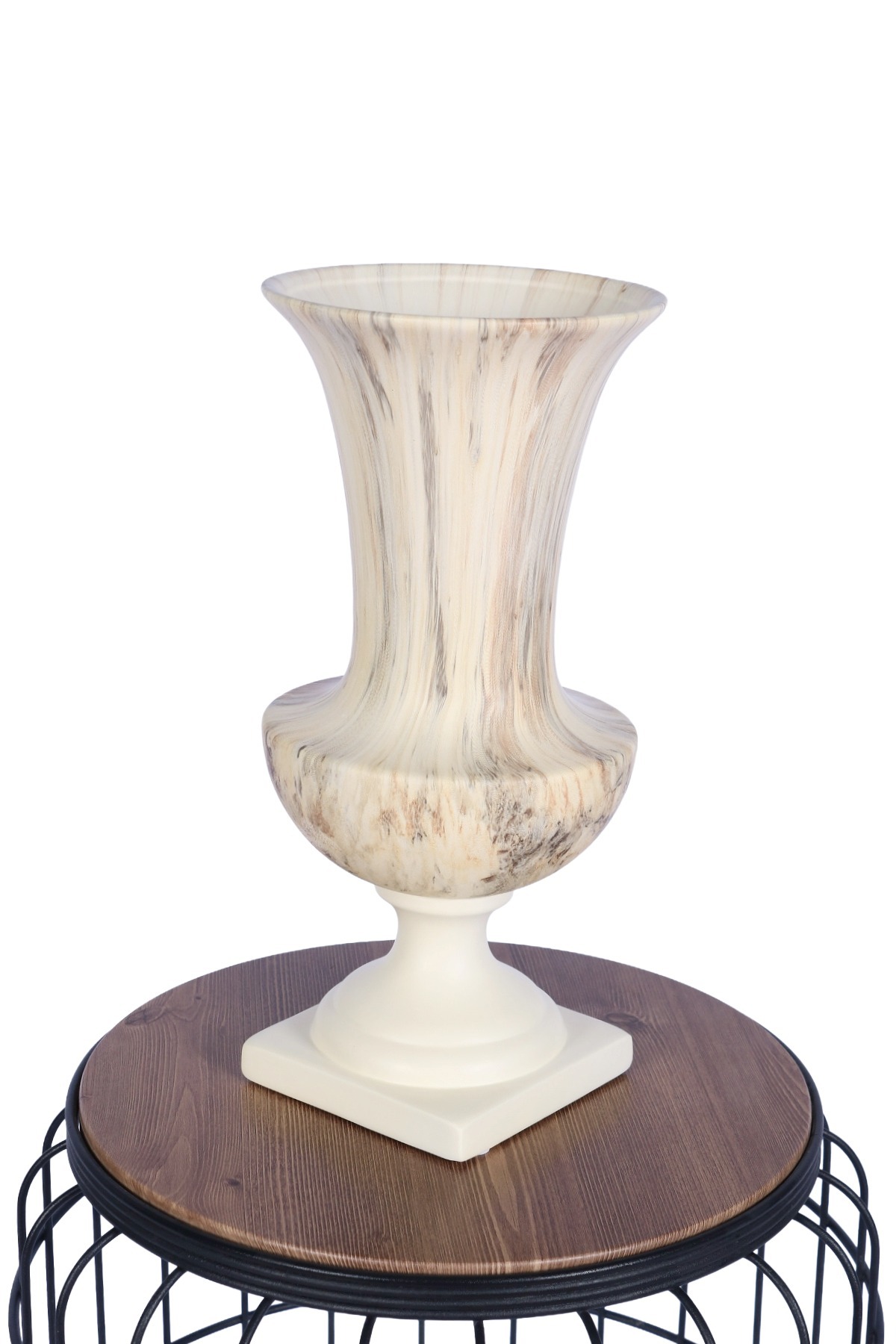 Ayaklı (kaideli) tasarımı sayesinde tek başına dekoratif etki oluşturur