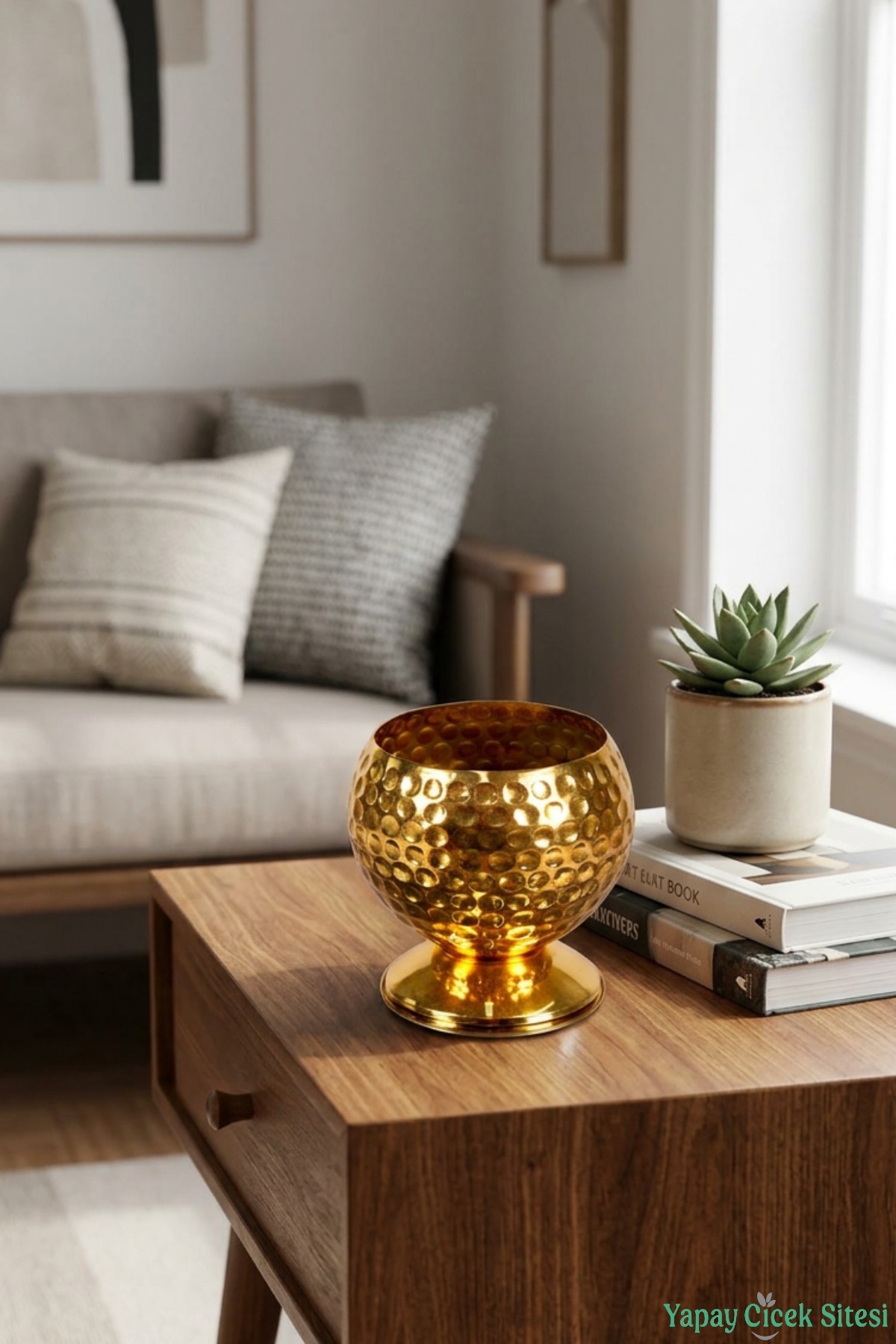 Metal Dekoratif Darbeli Küre Saksı 12 cm Altın