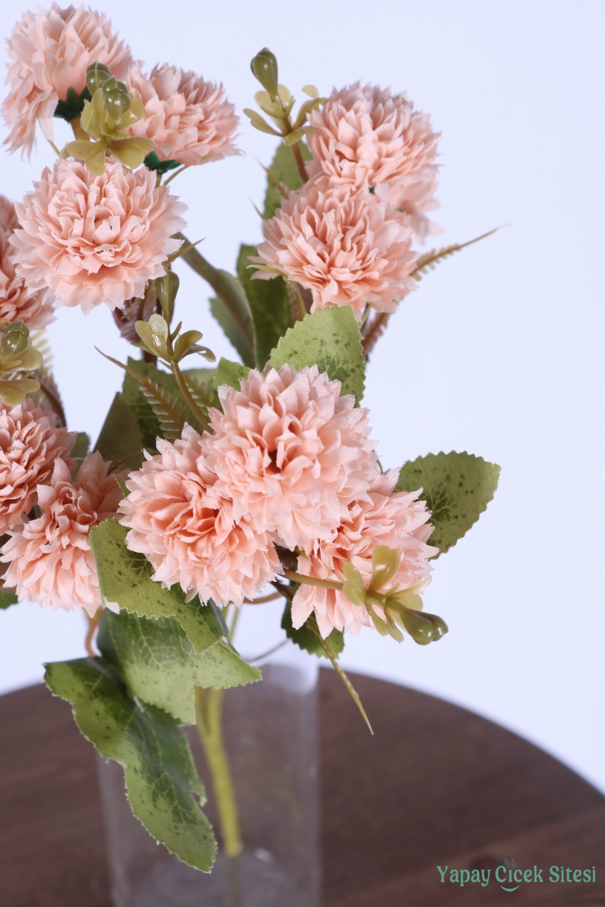 Malzeme: Kumaş dokulu yapay çiçek başları, plastik sap ve yapraklar
