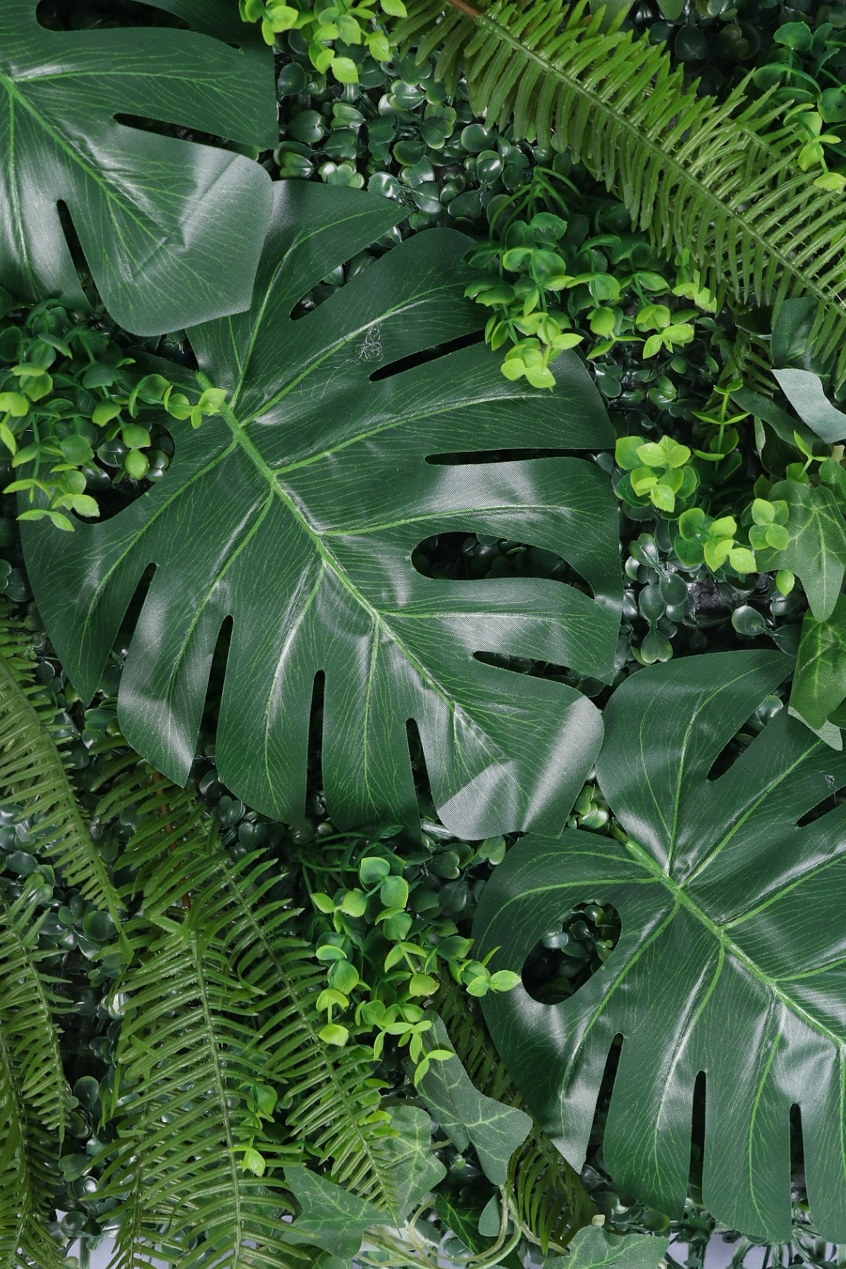 • Doğal Çeşitlilik: Panel içerisinde kullanılan egzotik palmiye yaprakları, sarmaşıklar, eğrelti otları ve yosun detayları, gerçek bir "Dikey Bahçe" illüzyonu yaratır.