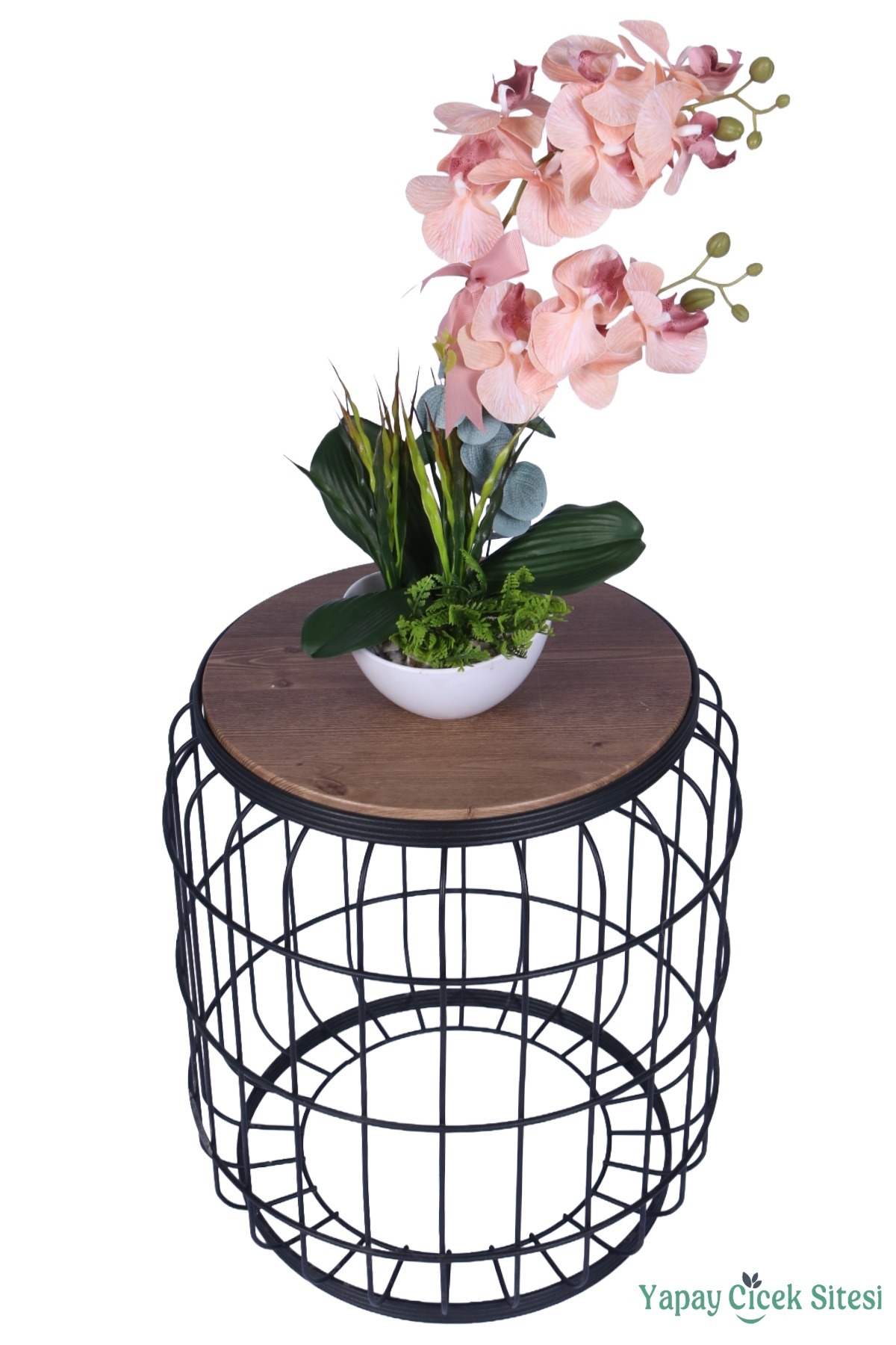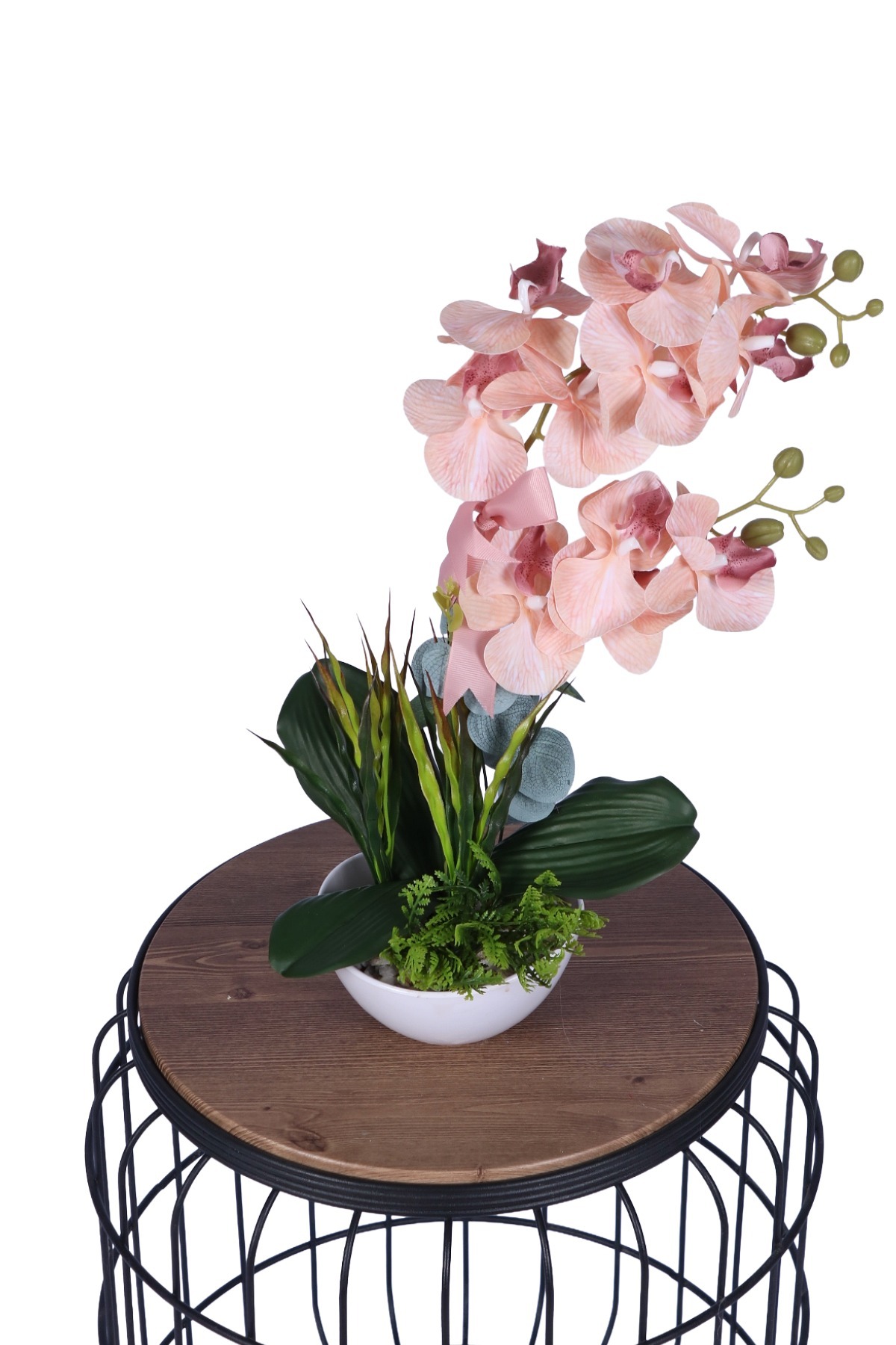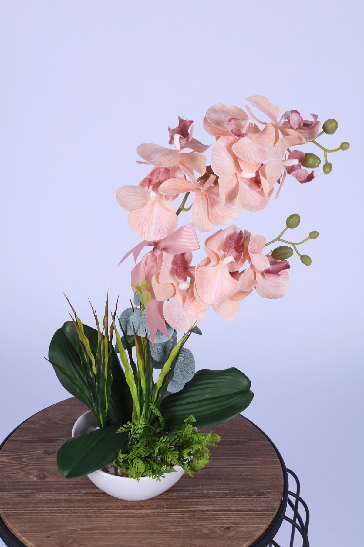 Yapay Çiçek Sitesi Dekoratif Melamin Saksıda Bol Yeşillikli Orkide Tanzimi Açık Pembe