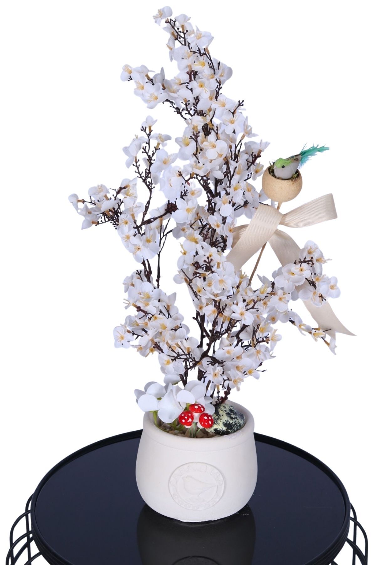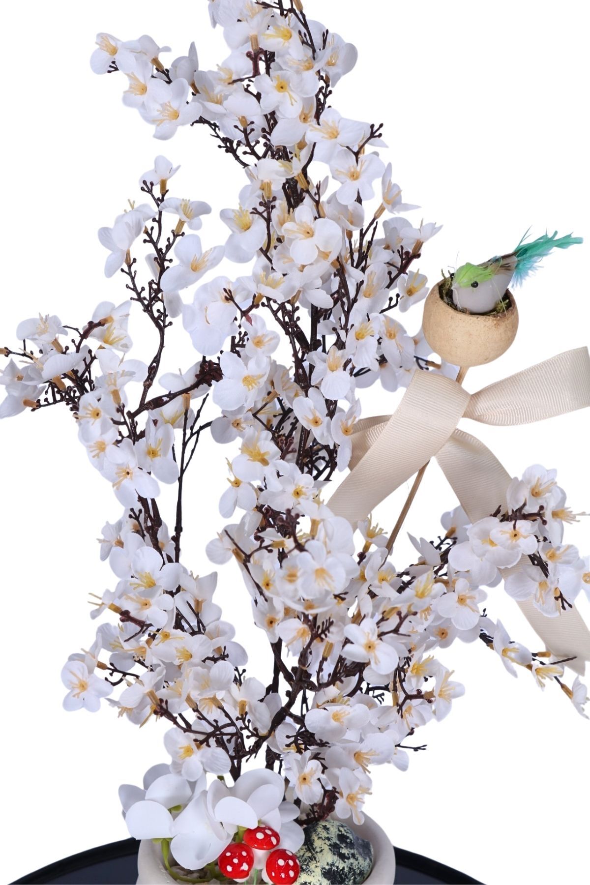 Gerçeğe yakın dokuda tasarlanmış Beyaz Japon kiraz (sakura) çiçeklerinden oluşur
