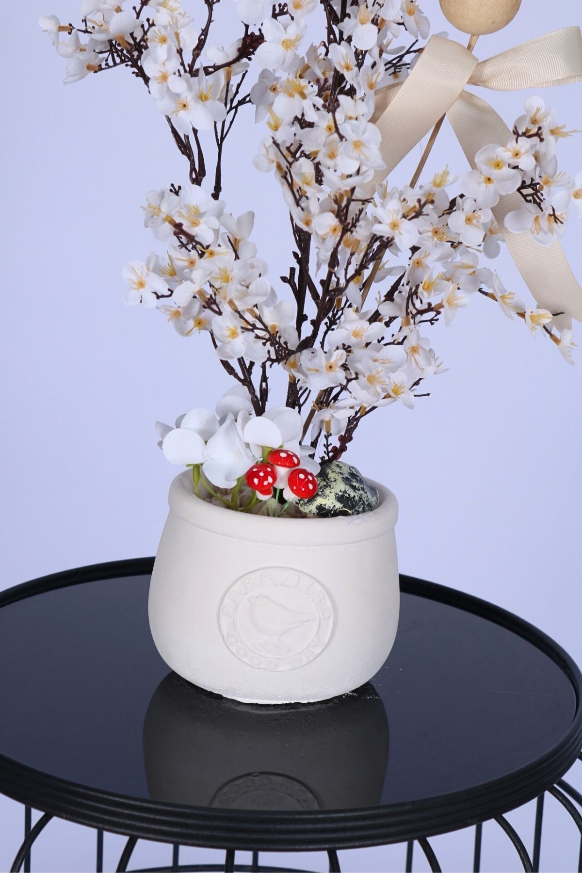 Dekoratif beyaz saksı içerisinde hazır tanzim olarak sunulmaktadır