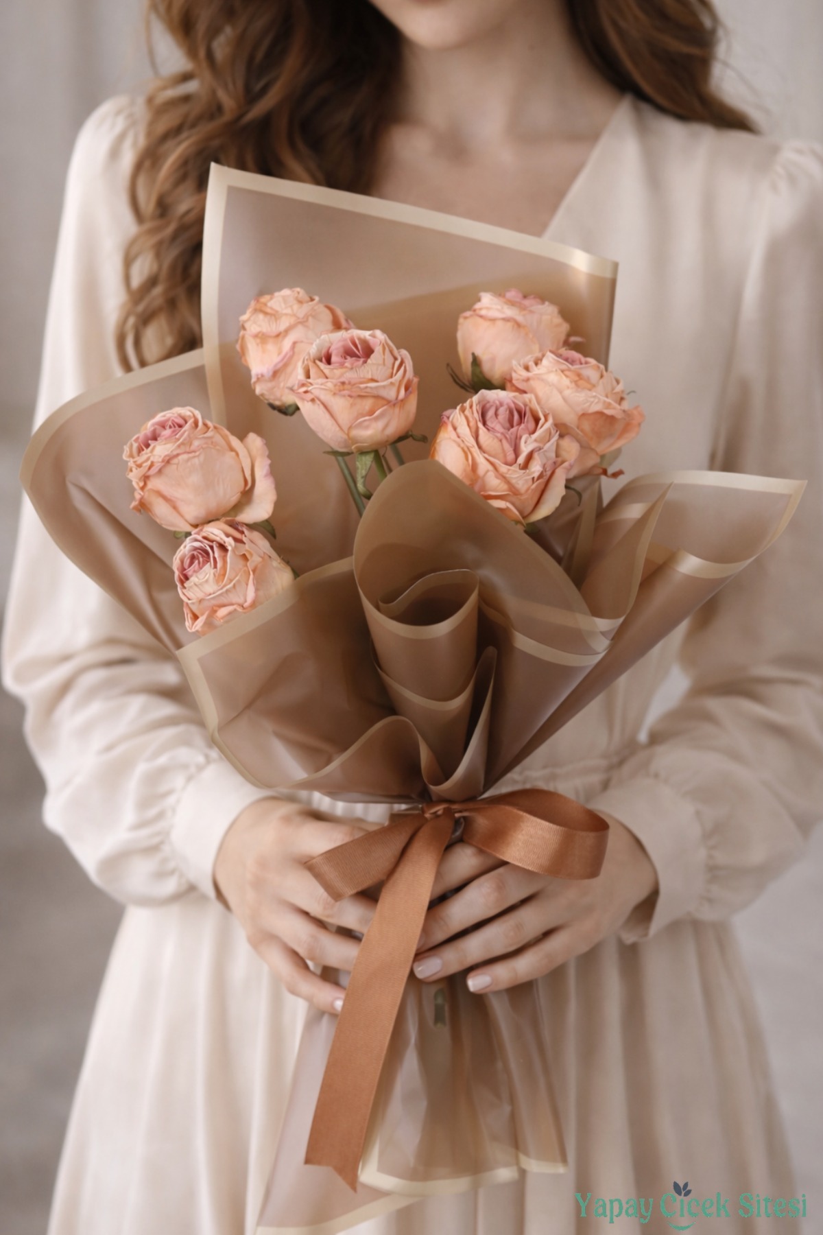 Not: Yapay çiçekli özel gün çiçeklerimiz demet bozulmadan ve kesilmeden görseldeki gibi hazırlanmaktadır. Kutlama sonrasında jelatin kağıdını çıkararak vazonuzda sergileyebilirsiniz.