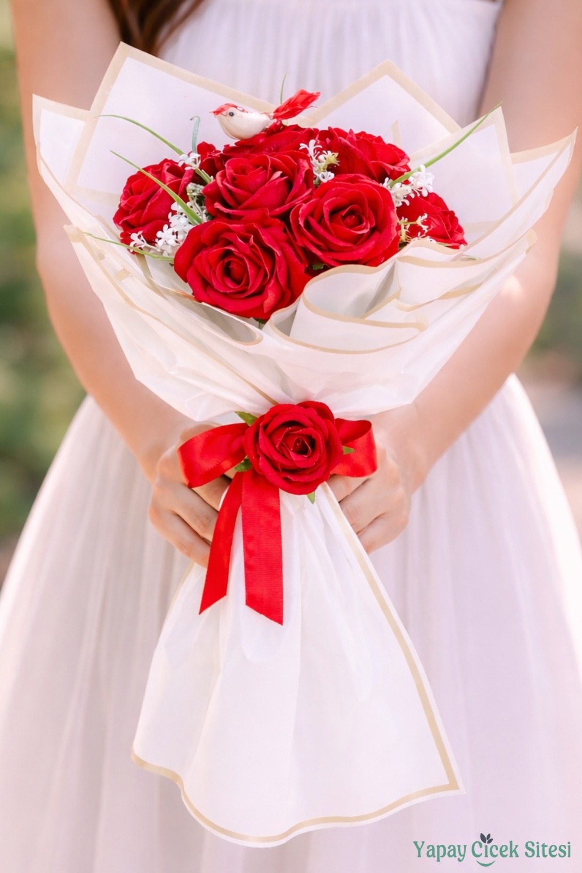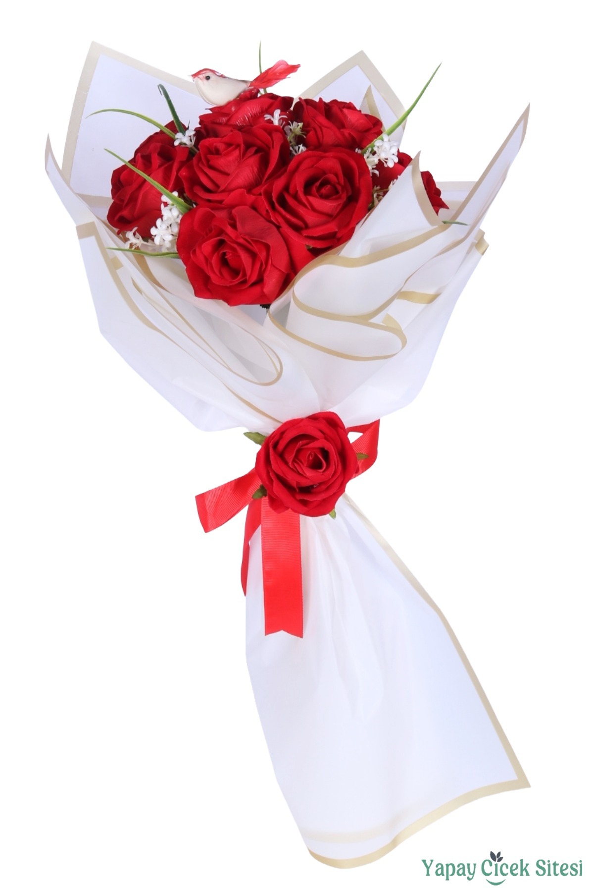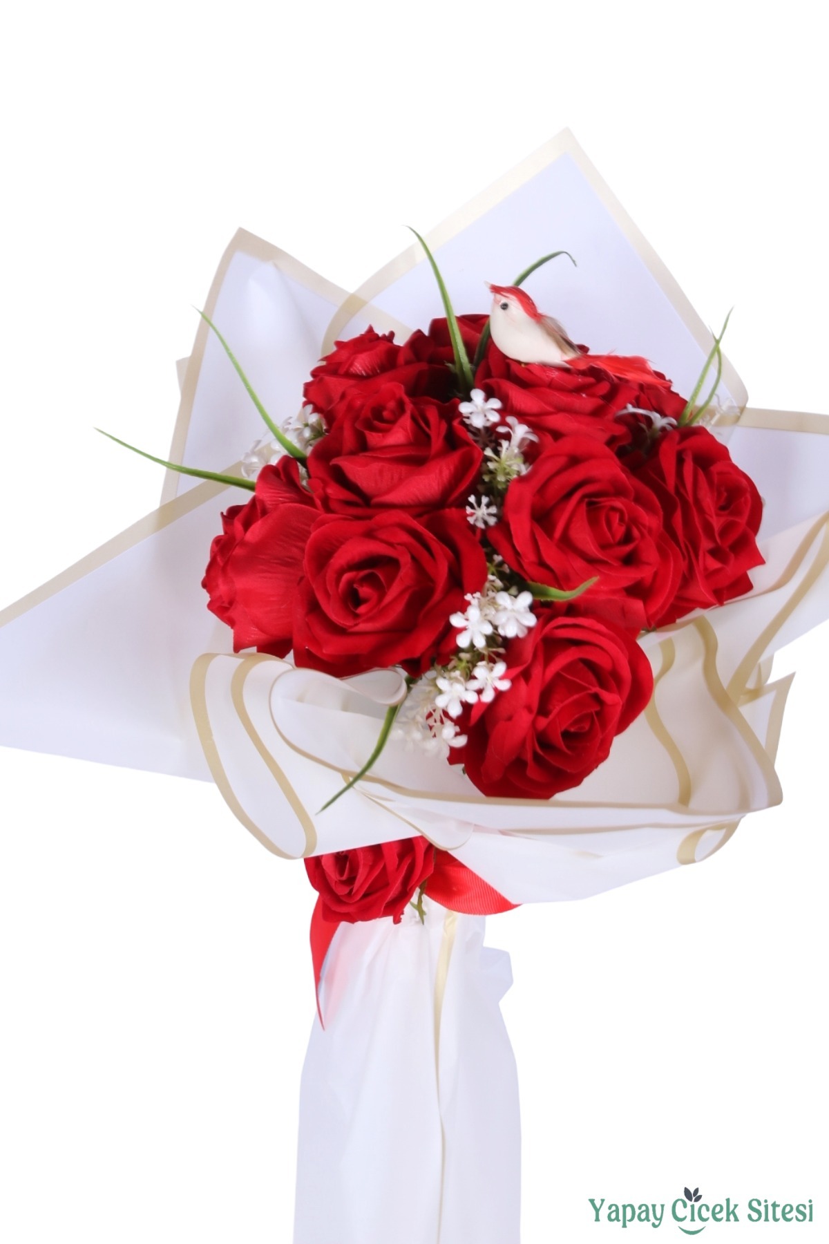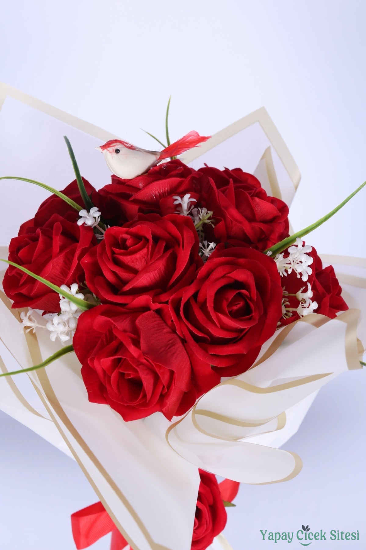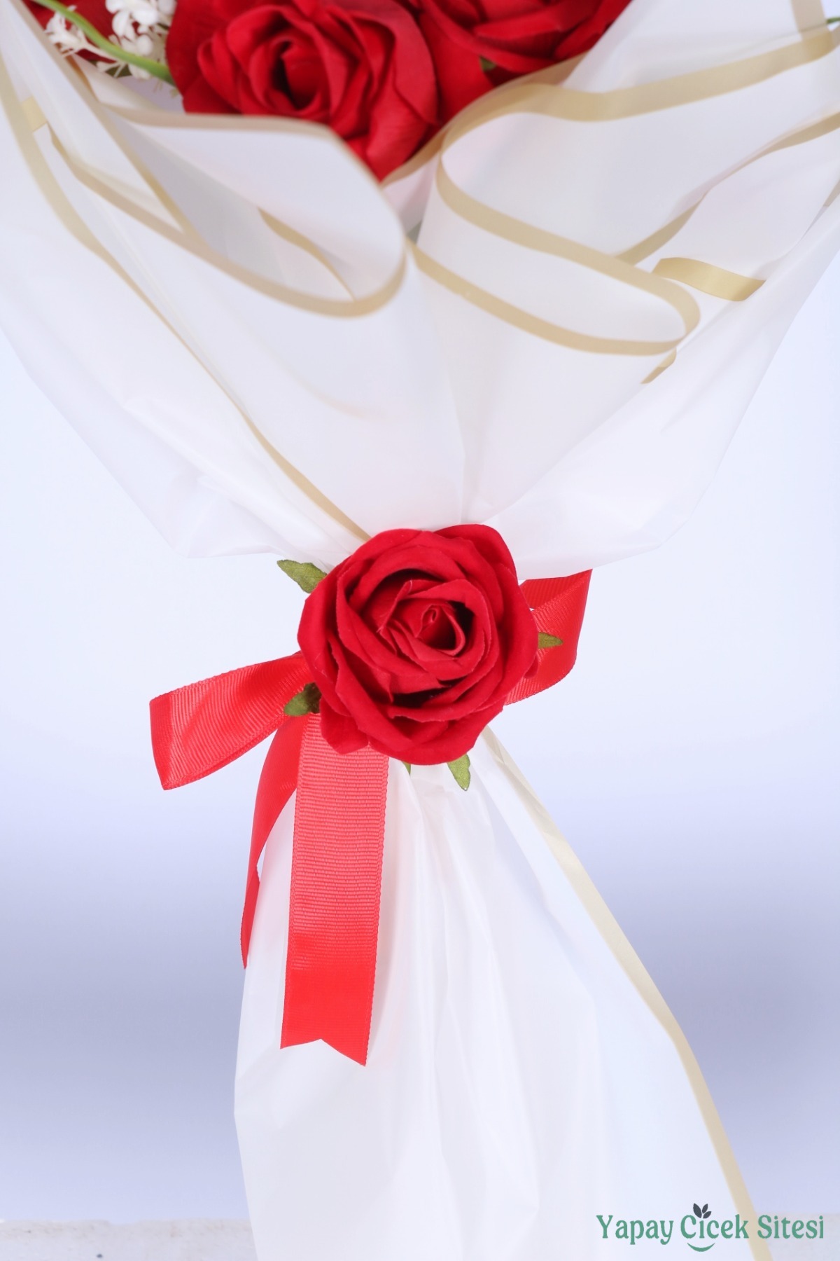 Not: Yapay çiçekli özel gün çiçeklerimiz demet bozulmadan ve kesilmeden görseldeki gibi hazırlanmaktadır. Kutlama sonrasında jelatin kağıdını çıkararak vazonuzda sergileyebilirsiniz.