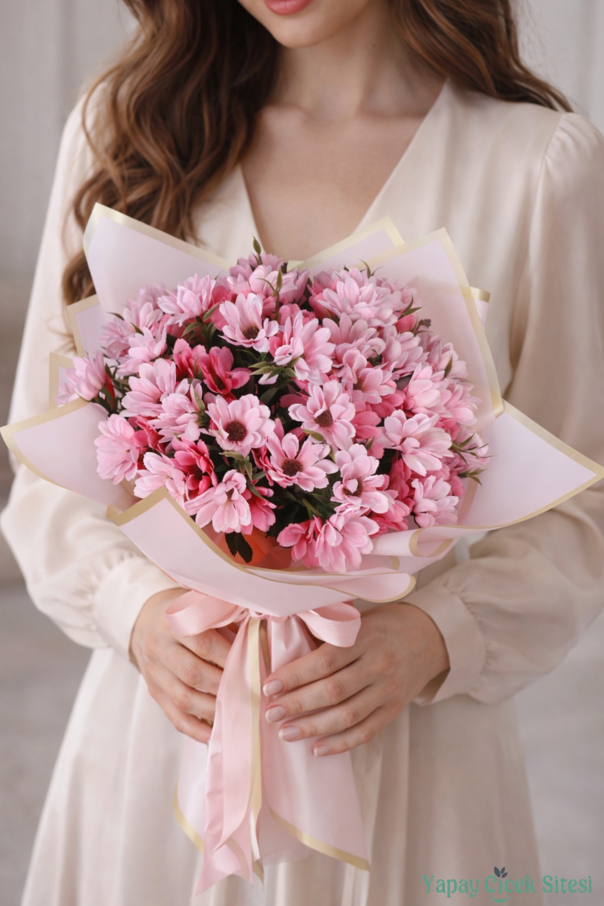 Pembe tonlarında premium yapay çiçek tasarımı
