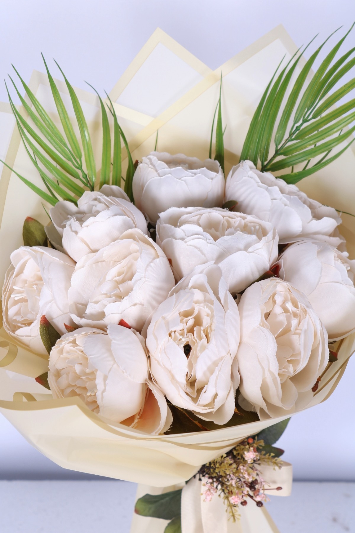 Krem tonlarında premium yapay çiçek tasarımı