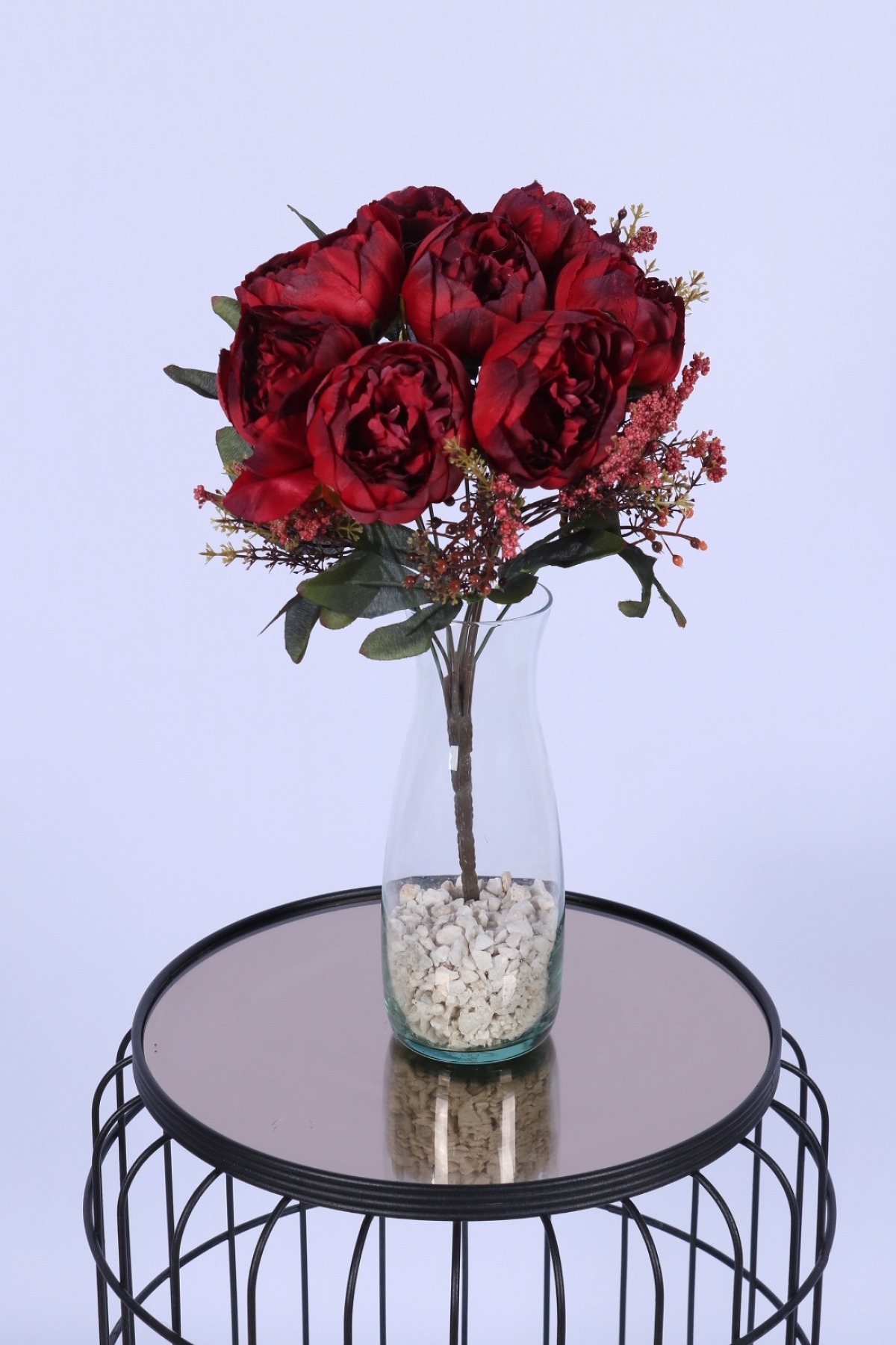 • Köpük cipsolu yapay şakayık gül demeti